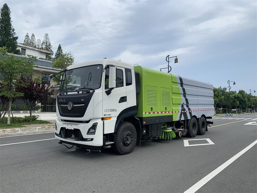 洗掃潔凈度高,該車型齊全的功能解決不同路面環境的作業,一次作業洗掃效率達98%以上,前沖功能、洗掃功能、路沿清洗功能、后噴霧功能、低壓沖洗功能以及采用的吸盤+左右側噴桿結構,路面、溝縫、彎道處、路沿上等處的灰塵、垃圾均能處理干凈,確保環境干凈、整潔。
