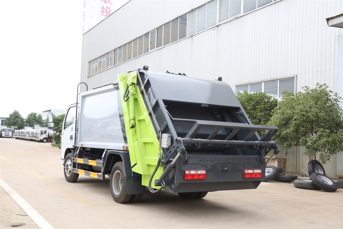 上裝配置:垃圾箱容積:6方,新款平面弧形廂體,廂體材料為武鋼優質碳鋼,PLC一鍵操作**,手電一體操作模式,兩側雙電控,帶駕駛室內操作,底板支撐加強,雙向壓縮,開放式易清潔污水箱。壓縮式垃圾車采用機電液一體化技術,借助機、電、液聯合自動**系統、電腦**、手動操作系統,通過填裝器和推鏟等專用裝置,實現垃圾倒入、壓碎或壓扁、強力裝填,把垃圾擠入車廂并壓實和推卸,污水全部進入污水廂,解決了垃圾運輸過程中的二次污染的問題。壓縮式垃圾車具有自動反復壓縮以及蠕動壓縮功能,壓縮比高、密封性好、裝載量大﹑操作方便、環保性好﹑整車利用功率高等優點。作業自動化,垃圾收集方式簡便、高效。后翻轉機構選裝:1、掛塑料桶式翻轉機構;2、掛鐵桶式翻轉機構;3、擺臂式翻轉機構; 4、簸箕斗式翻轉機構。