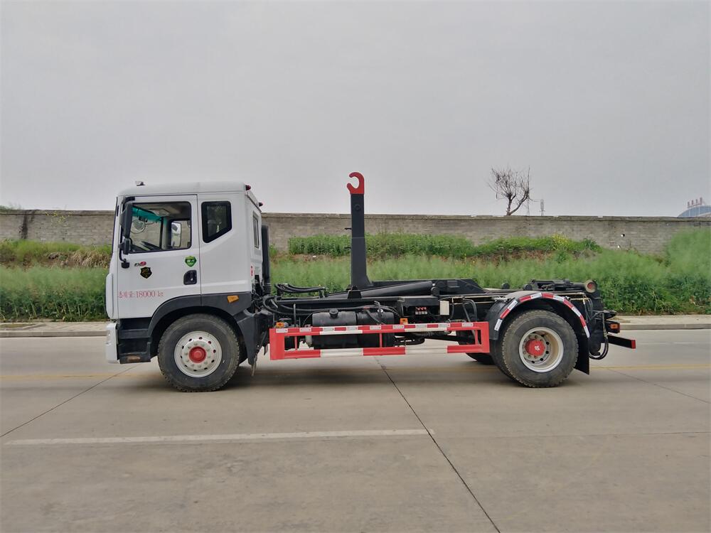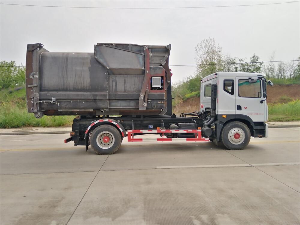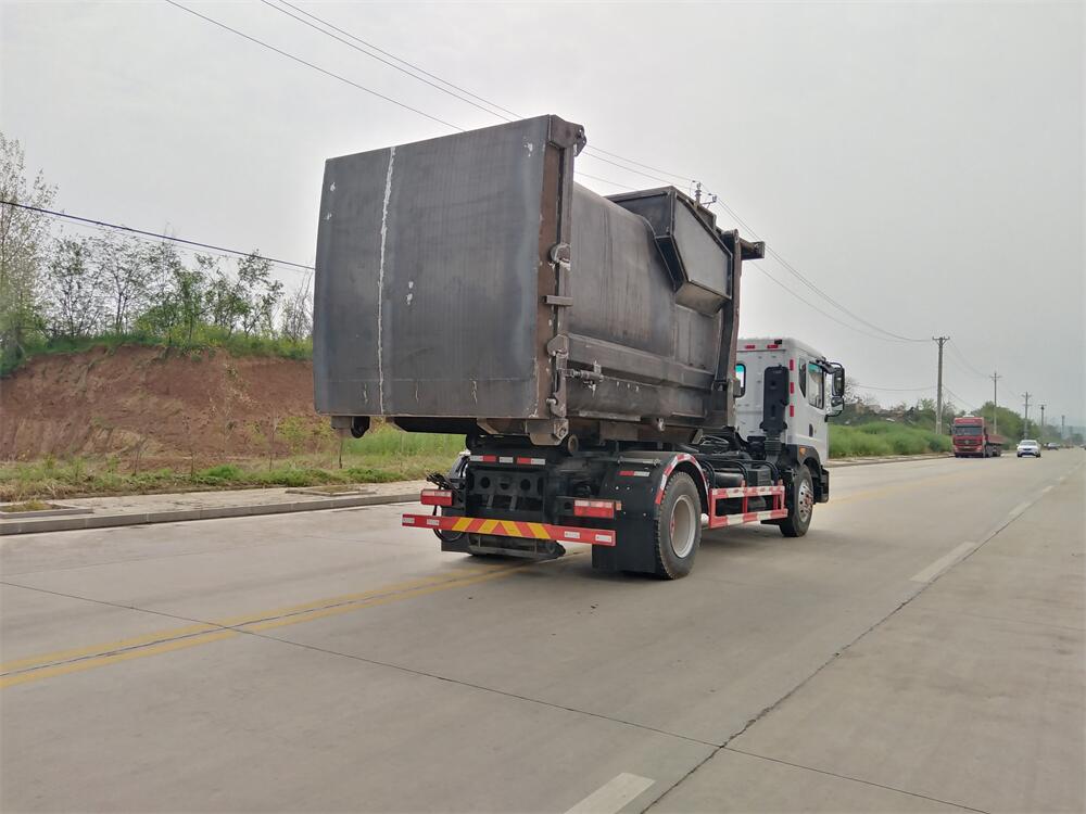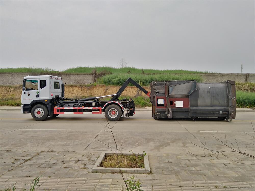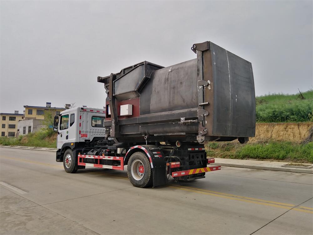 勾臂式垃圾車(車廂可卸式垃圾車)介紹: 車廂可卸式垃圾車又叫拉臂式垃圾車,是一種采用高新設(shè)計可伸縮的鉤臂,實現(xiàn)垃圾廂的二次吊裝,自吊上放下,可自行傾倒垃圾的環(huán)衛(wèi)設(shè)備。 拉臂式垃圾車結(jié)構(gòu)簡單,操作穩(wěn)定方便,裝卸效率高,機(jī)械化程度高,節(jié)省人力。鉤臂垃圾車一車可帶多個垃圾廂,在裝卸的運輸過程中可有效地避免二次污染。 拉臂垃圾車采用高新設(shè)計可擺動的鉤臂,垃圾箱由框架、開啟油缸、滑輪、后門和若干加強(qiáng)框架與鋼板焊接而成。調(diào)換貨廂快捷方便,貨廂上帶蓋(倒垃圾時可翻開),鉤臂垃圾車?yán)鴰w可選用碳鋼、不銹鋼材質(zhì)、內(nèi)部采取環(huán)氧樹脂防腐處理,改裝部分與原車底盤為可分離式,維修方便且保持了原車的機(jī)動性及行駛性能。
