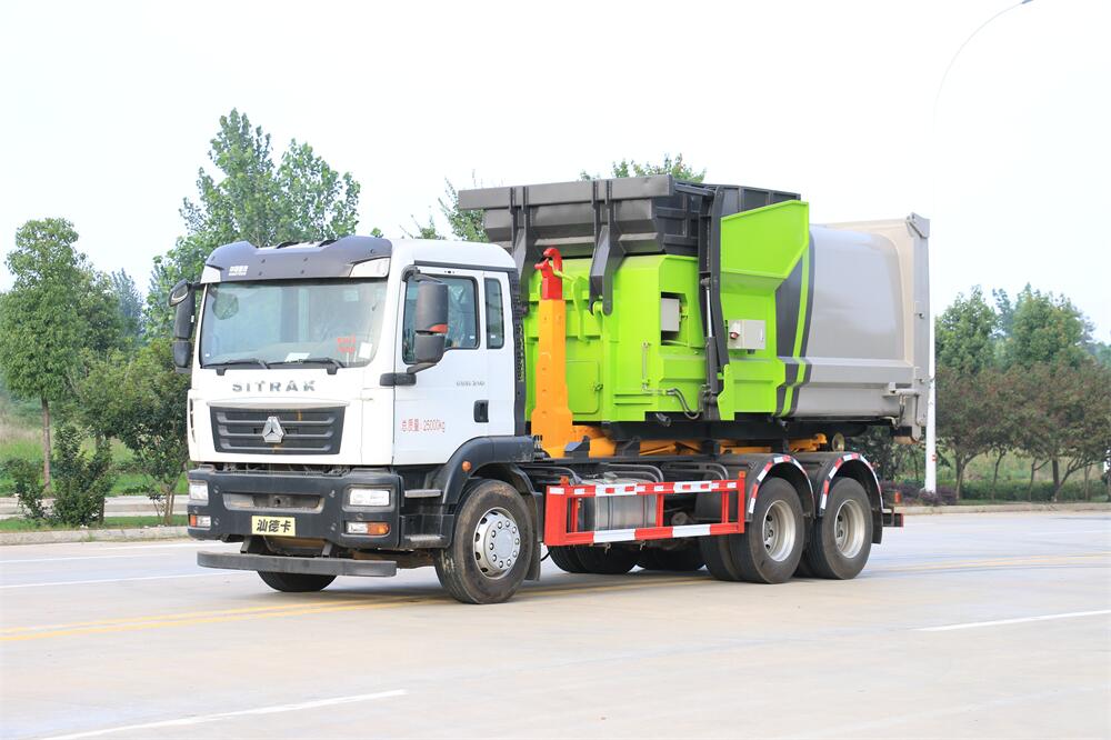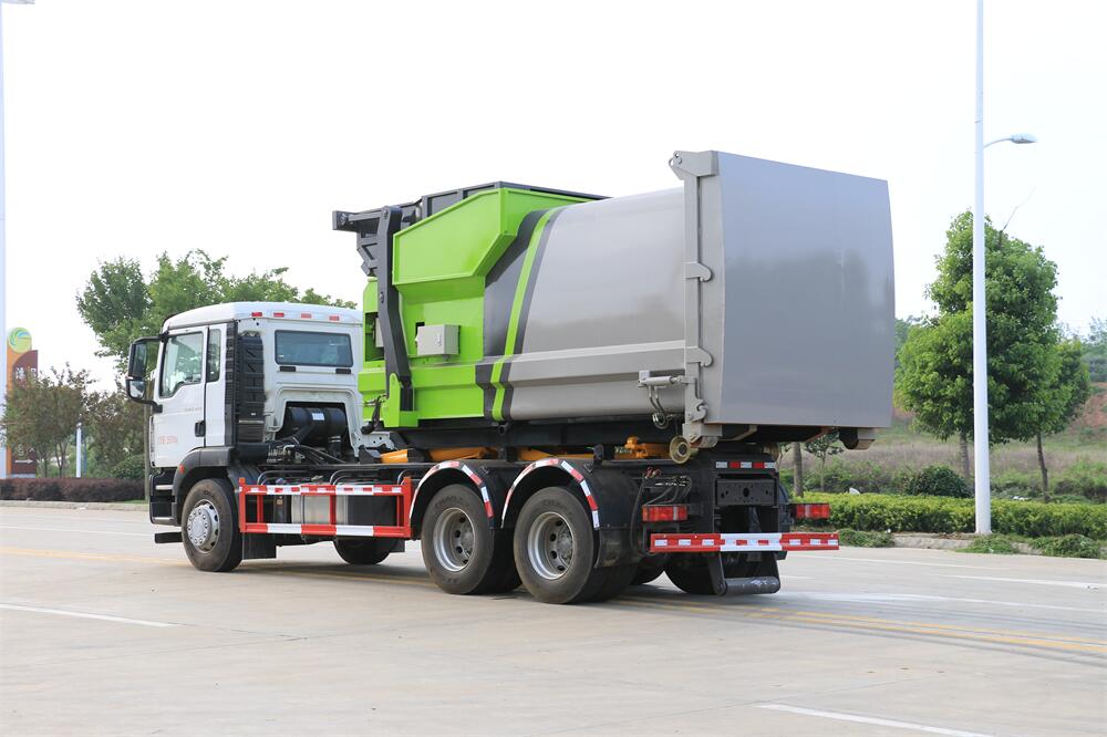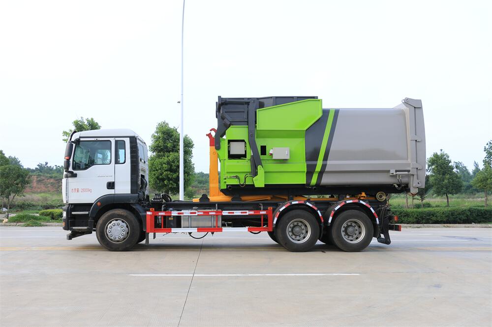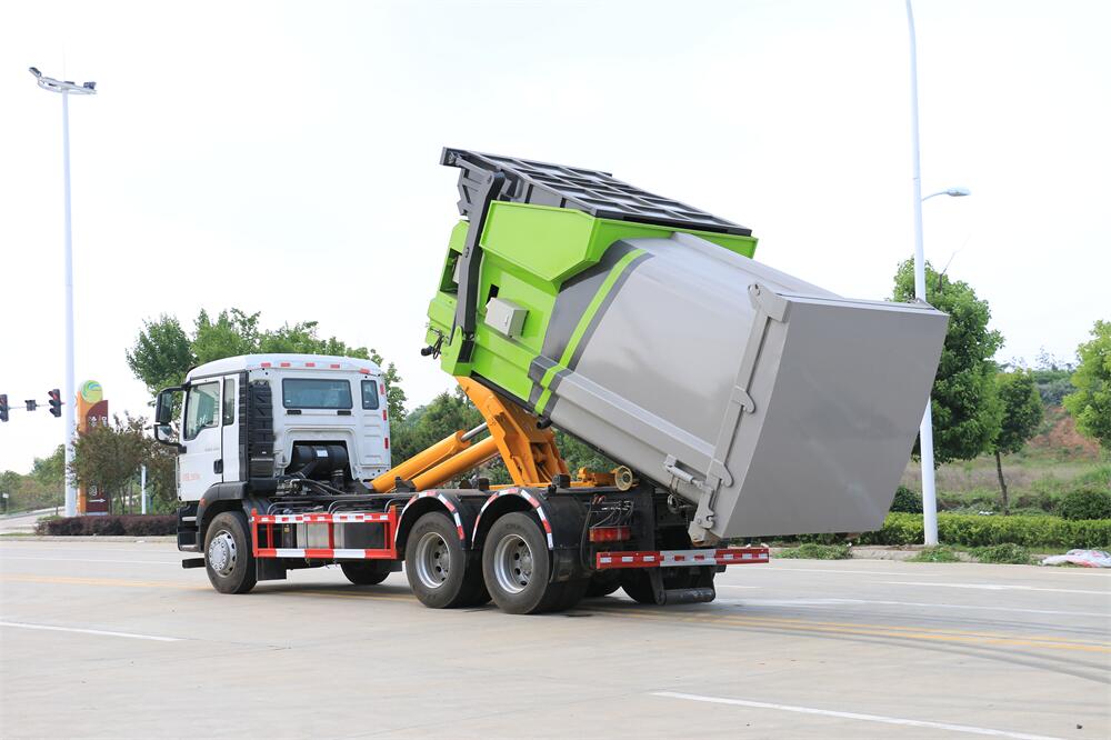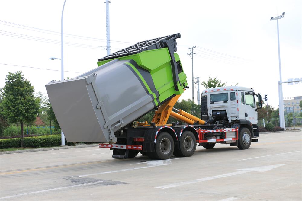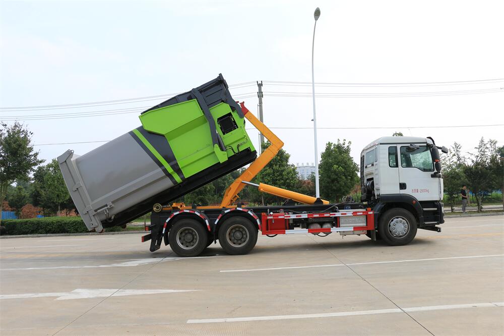 勾臂式垃圾車(車廂可卸式垃圾車)介紹: 車廂可卸式垃圾車又叫拉臂式垃圾車,是一種采用高新設(shè)計(jì)可伸縮的鉤臂,實(shí)現(xiàn)垃圾廂的二次吊裝,自吊上放下,可自行傾倒垃圾的環(huán)衛(wèi)設(shè)備。 拉臂式垃圾車結(jié)構(gòu)簡(jiǎn)單,操作穩(wěn)定方便,裝卸效率高,機(jī)械化程度高,節(jié)省人力。鉤臂垃圾車一車可帶多個(gè)垃圾廂,在裝卸的運(yùn)輸過程中可有效地避免二次污染。 拉臂垃圾車采用高新設(shè)計(jì)可擺動(dòng)的鉤臂,垃圾箱由框架、開啟油缸、滑輪、后門和若干加強(qiáng)框架與鋼板焊接而成。調(diào)換貨廂快捷方便,貨廂上帶蓋(倒垃圾時(shí)可翻開),鉤臂垃圾車?yán)鴰w可選用碳鋼、不銹鋼材質(zhì)、內(nèi)部采取環(huán)氧樹脂防腐處理,改裝部分與原車底盤為可分離式,維修方便且保持了原車的機(jī)動(dòng)性及行駛性能。