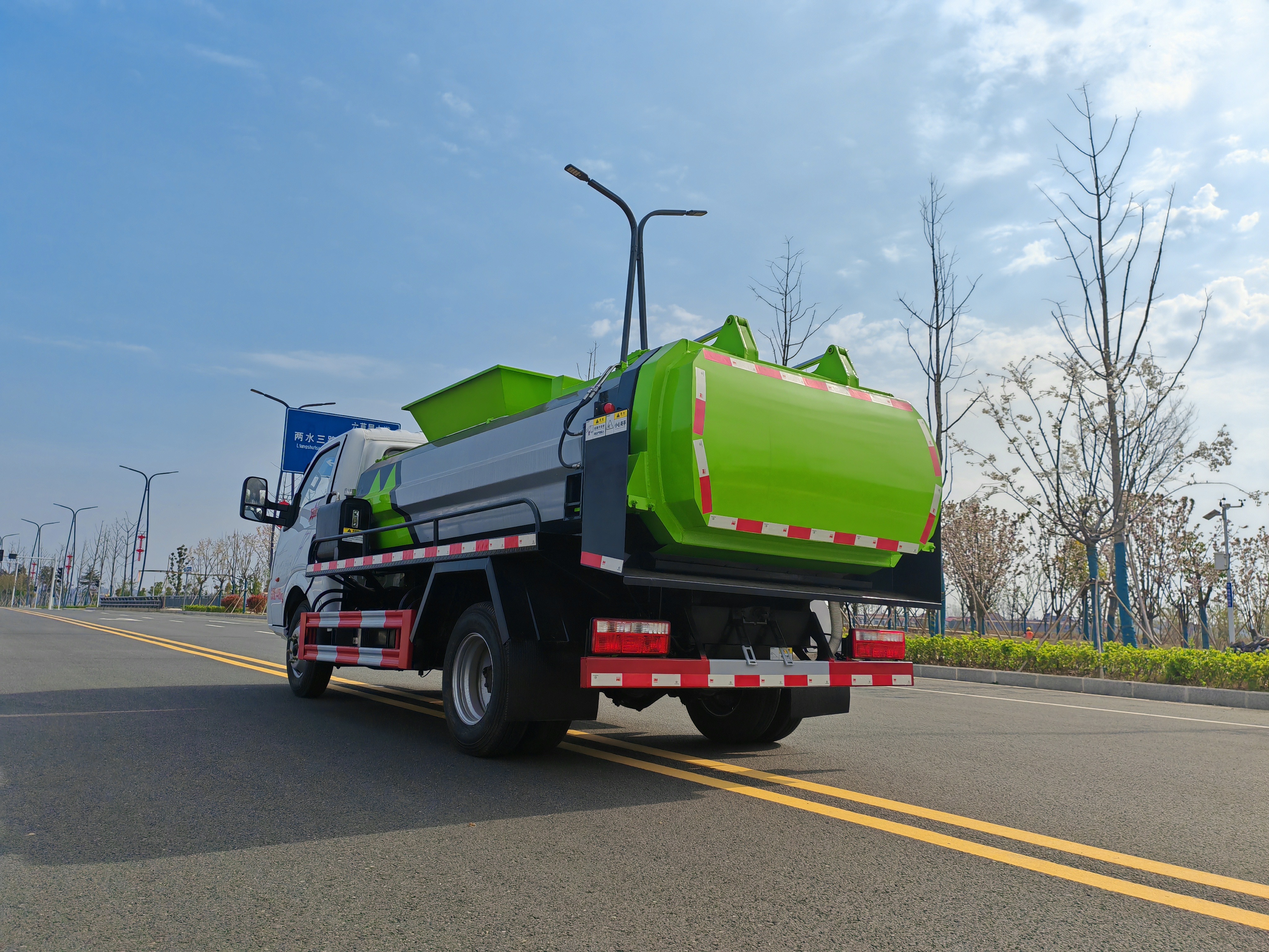 上裝配置:采用Q710高強(qiáng)鋼,邊2底4,輕量化設(shè)計(jì),大容量,上藍(lán)牌,不超重,高度可選可進(jìn)地下室高度。加強(qiáng)型方形罐體,采用國內(nèi)知名品牌液壓系統(tǒng)(國產(chǎn)知名油泵、湖南長沙國產(chǎn)知名多路閥、餐廚專用定制油缸、浙江嘉善取力器),①選裝拉桿或鏈條式提升機(jī),可掛120L/240L標(biāo)準(zhǔn)塑料垃圾桶。②后蓋液壓開啟、液壓鎖緊,后蓋帶有密封條,搭配插銷可調(diào)節(jié)式液壓鎖緊保證滴水不漏。③中置雙頂舉升卸料,卸料角度可根據(jù)需求調(diào)節(jié)。④帶無線遙控操作更方便。