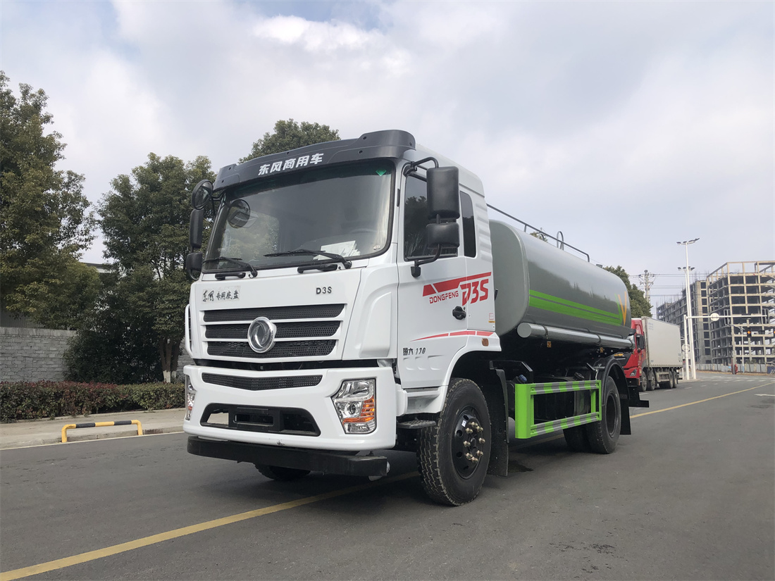 灑水車前裝有鴨形噴嘴或圓頭沖嘴,后面裝有圓柱開灑水噴嘴或蓮蓬頭噴嘴,后部有一工作平臺,裝配有水炮。后部還可裝8個噴嘴(選裝)。