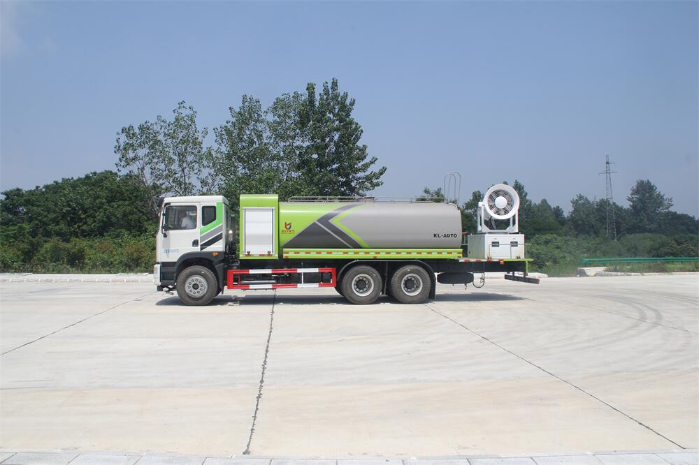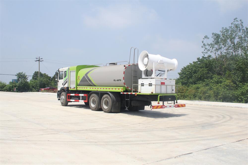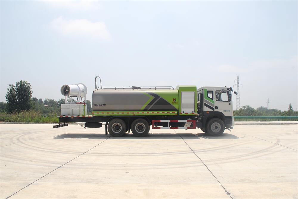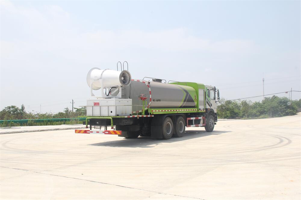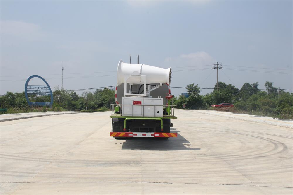 上裝配置:罐體容積為 16立方,選配風(fēng)送式霧炮機(jī)組射程30米、40米、50米、60米、80米、100米、120米霧炮,罐體鋼板為4mm碳鋼Q235材質(zhì),罐內(nèi)隔板具有防波作用,以減輕汽車行駛時(shí)罐體液體沖擊,罐體及整車外形尺寸按照公告。帶大功率專用灑水泵,泵可自吸自排,整車前沖、后灑、側(cè)噴、帶65消防接口,后平臺配CLW-50、CLW-60、CLW-80、CLW-100、CLW-120型風(fēng)送式霧炮機(jī)組;罐體前封頭配大功率柴油發(fā)電機(jī)組;前封頭帶水位計(jì),后平臺主管路帶1寸澆花接口,后爬梯。帶兩根輸水管及陰陽端。罐體顏色:銀/灰/綠,罐體兩側(cè)噴“多功能抑塵車”字樣,貼反光標(biāo)示。