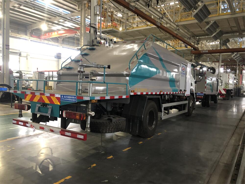 上裝配置:罐體容積為 8立方,選配風(fēng)送式霧炮機(jī)組射程30米、40米、50米、60米、80米、100米、120米霧炮,罐體鋼板為4mm碳鋼Q235材質(zhì),罐內(nèi)隔板具有防波作用,以減輕汽車行駛時(shí)罐體液體沖擊,罐體及整車外形尺寸按照公告。帶大功率專用灑水泵,泵可自吸自排,整車前沖、后灑、側(cè)噴、帶65消防接口,后平臺配CLW-50、CLW-60、CLW-80、CLW-100、CLW-120型風(fēng)送式霧炮機(jī)組;罐體前封頭配大功率柴油發(fā)電機(jī)組;前封頭帶水位計(jì),后平臺主管路帶1寸澆花接口,后爬梯。帶兩根輸水管及陰陽端。罐體顏色:銀/灰/綠,罐體兩側(cè)噴“多功能抑塵車”字樣,貼反光標(biāo)示。