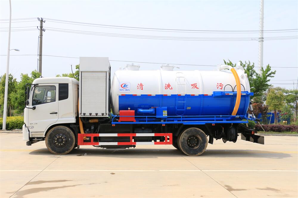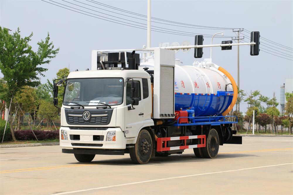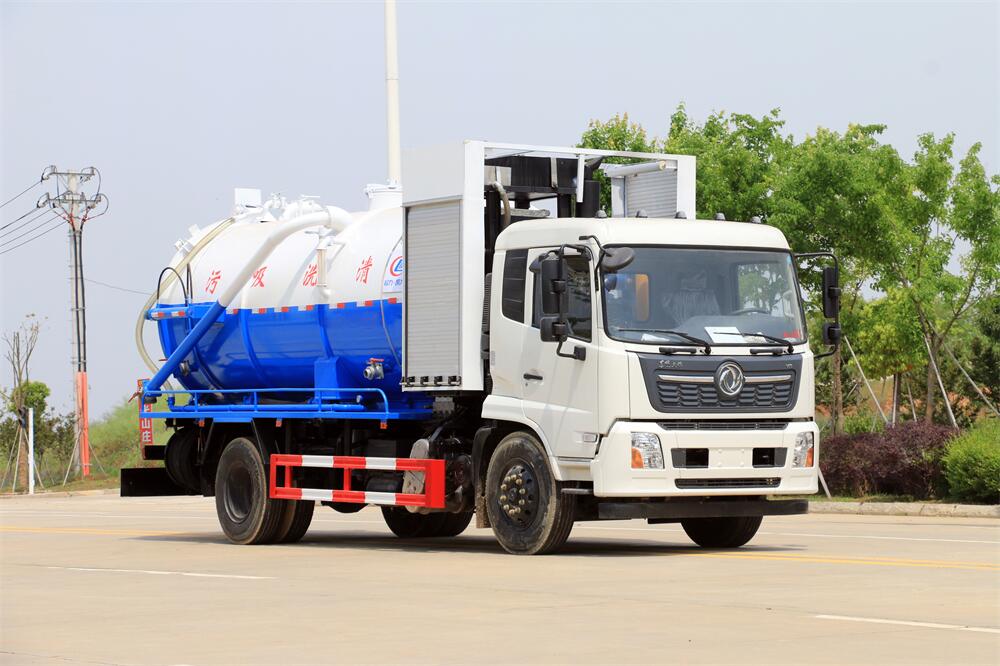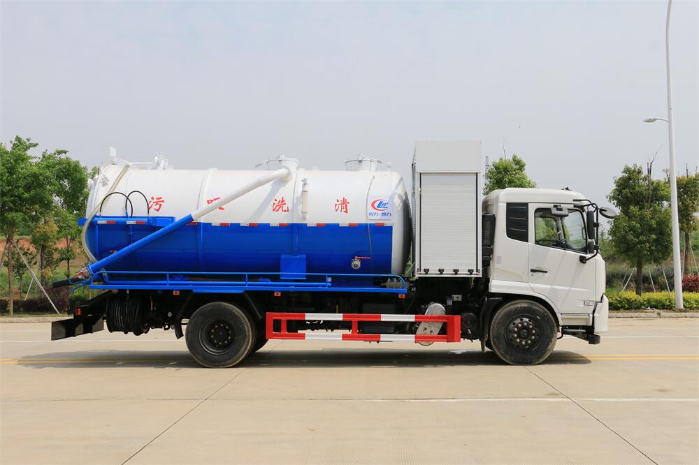 15方清洗吸污車-東風天錦15方10+5清洗吸污兩用車-帶副發(fā)動機 圓罐