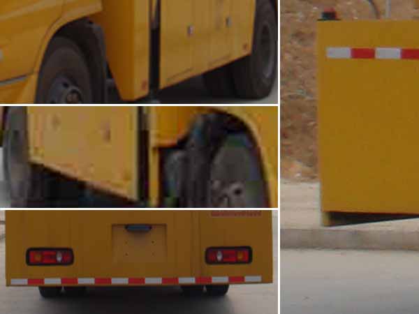 配置 隨底盤選裝駕駛室;前伸690mm,后伸270mm;僅采用底盤4700mm軸距;ABS型號:3631010-C2000,生產廠家:東科克諾爾商用車制動系統(十堰)有限公司;側面防護及后下部防護裝置材料材質:Q235,側面防護及后下部防護裝置為整體式結構;后下部防護裝置離地高度:500mm.